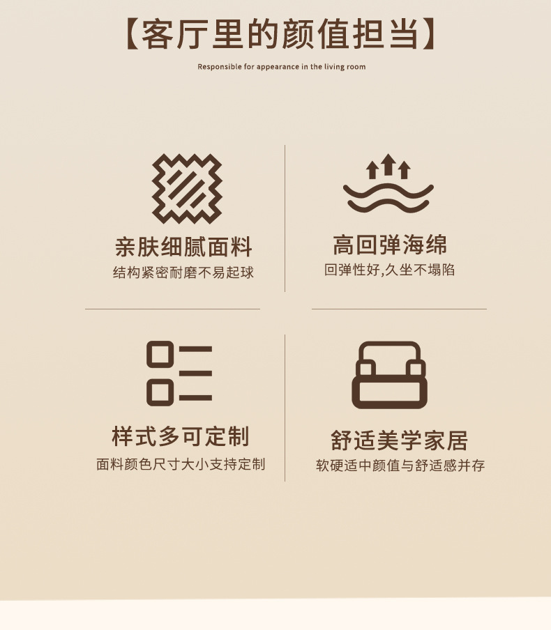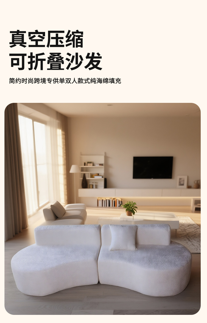 针对跨境运输需求,沙发采用真空卷包压缩工艺,压缩后体积大幅缩减,不仅降低物流成本,还方便搬运入户,哪怕是狭窄楼道或小户型也能轻松通过。拆封后解除真空包装,静置数小时即可恢复蓬松形态,无需专业安装,省时又省心。无论是打造奶油风客厅的核心家具,还是为居家空间增添舒适休闲区,这款沙发都能兼顾颜值、舒适与实用性。