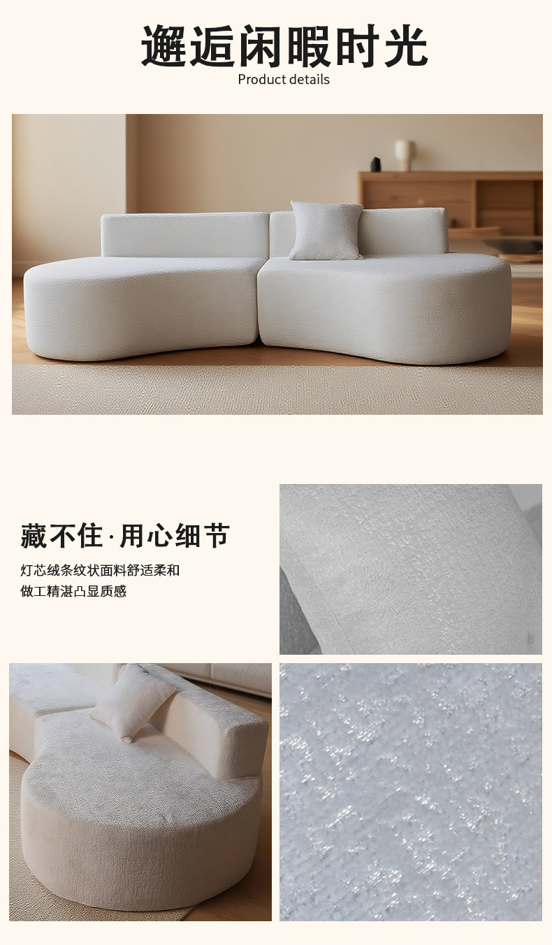这款专为奶油风客厅打造的跨境真空卷包弧形沙发,凭借温柔颜值与实用设计,成为家居场景的 “氛围担当”。它精准契合当下流行的奶油风审美,浅色系基调搭配柔和线条,无需复杂装饰,就能轻松融入简约、温馨的客厅环境,让空间瞬间焕发生机与暖意。