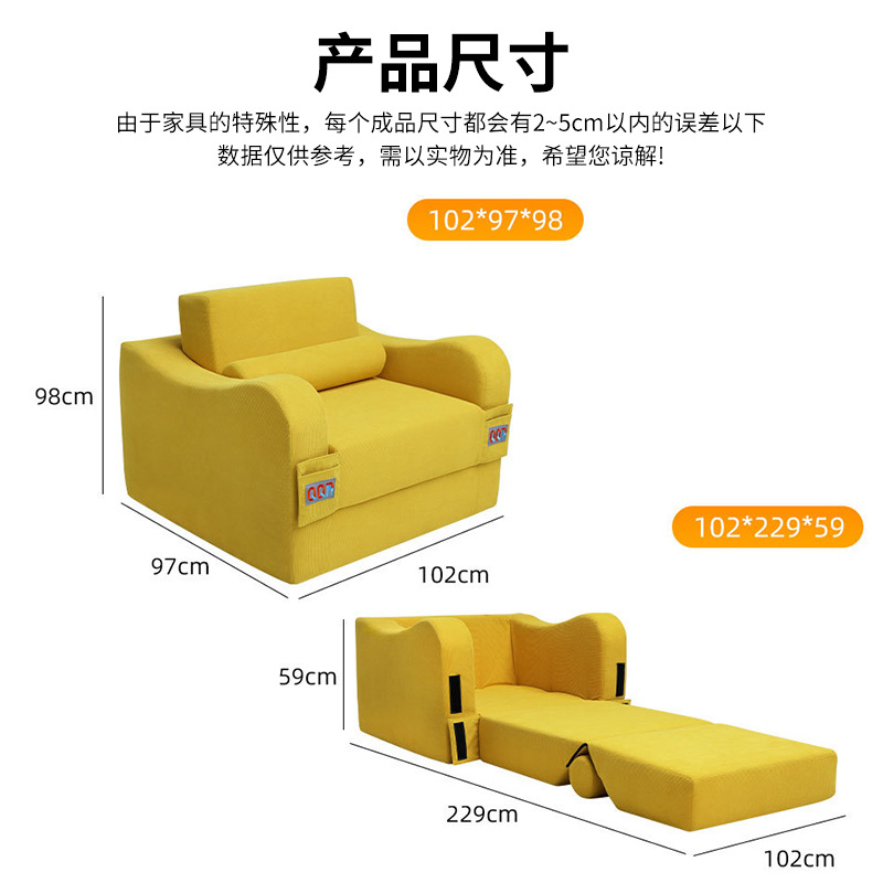 作为单人尺寸设计,它完美平衡 “舒适感” 与 “空间感”:日常坐卧时能贴合身体曲线,不显得局促;闲置时也不占用过多面积,客厅搭配主沙发可作补充座位,单独摆放又能成独立休闲角,灵活适配不同户型需求。核心亮点在于 “折叠两用” 功能 —— 平时是柔软的单人沙发,来客时轻轻展开就能变身临时沙发床,解决小户型 “待客无床” 的痛点,午休、临时休憩都能派上用场,一物两用超省心。内部填充高回弹海绵,坐感柔软不塌陷,追剧、看书时靠坐其中,腰背压力能有效缓解,尽显 “懒人” 舒适自由;表面选用亲肤布艺面料,触感细腻,且耐脏易清洁,不小心沾到污渍,湿抹布轻擦就能恢复洁净,适配日常高频使用。针对跨境运输需求,沙发采用压缩设计,压缩后体积大幅缩减,物流成本更低,搬运入户也轻松,女生独自也能拆箱操作,静置片刻即可恢复饱满形态,无需复杂安装。更贴心的是模块特性,若后续需要拓展,可灵活叠加同系列模块,从单人位升级为多人休闲区,兼顾当下使用与未来需求。无论是打造奶油风客厅的精致角落,还是解决租房、小户型的多功能需求,这款跨境单人沙发都能以颜值与实用性圈粉。