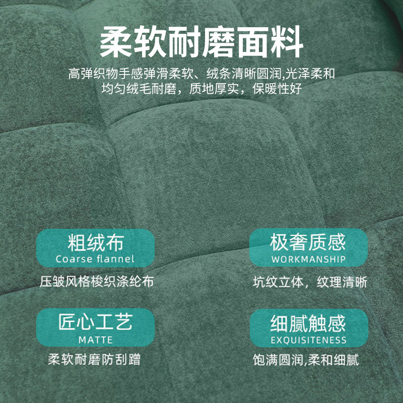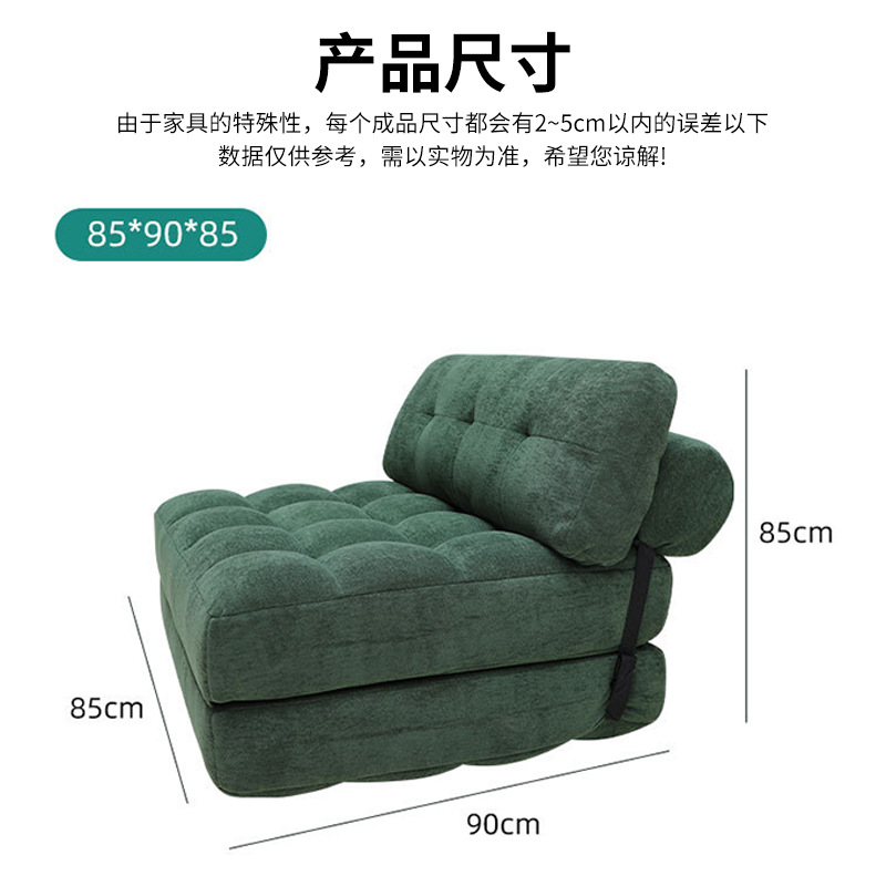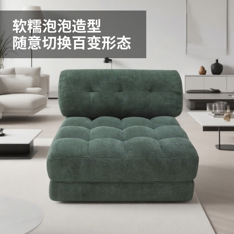 作为懒人专属单品,其舒适度源自高回弹海绵填充,坐感软糯如云朵却不失支撑,腰背贴合度经过人体工学优化,追剧、阅读时能快速缓解疲劳。更惊艳的是 “百变” 属性:日常是紧凑的单人 / 双人沙发,轻轻抽拉折叠即可秒变临时沙发床,15 秒内完成形态转换,完美应对来客留宿需求。模块化设计还支持多角度调节,侧放可作贵妃榻,拆分能当脚踏,真正实现 “一椅多用”。