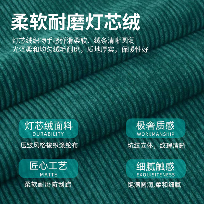 材质上选用高支数灯芯绒面料,立体绒条带来细腻触感,冬季坐卧自带暖意,夏季搭配透气内衬也不显闷热,活性印染工艺让色彩持久鲜亮,日常轻微污渍用湿抹布轻擦即可洁净。内部填充 45kg/m³ 高密度回弹海绵,坐感软糯却不失支撑,55cm 黄金坐深能完美贴合腰背曲线,实现 “陷而不塌” 的懒人躺体验,久坐追剧也不易腰酸背痛。